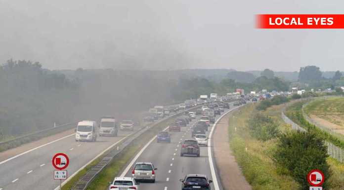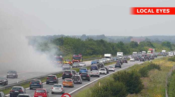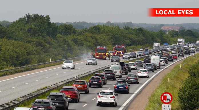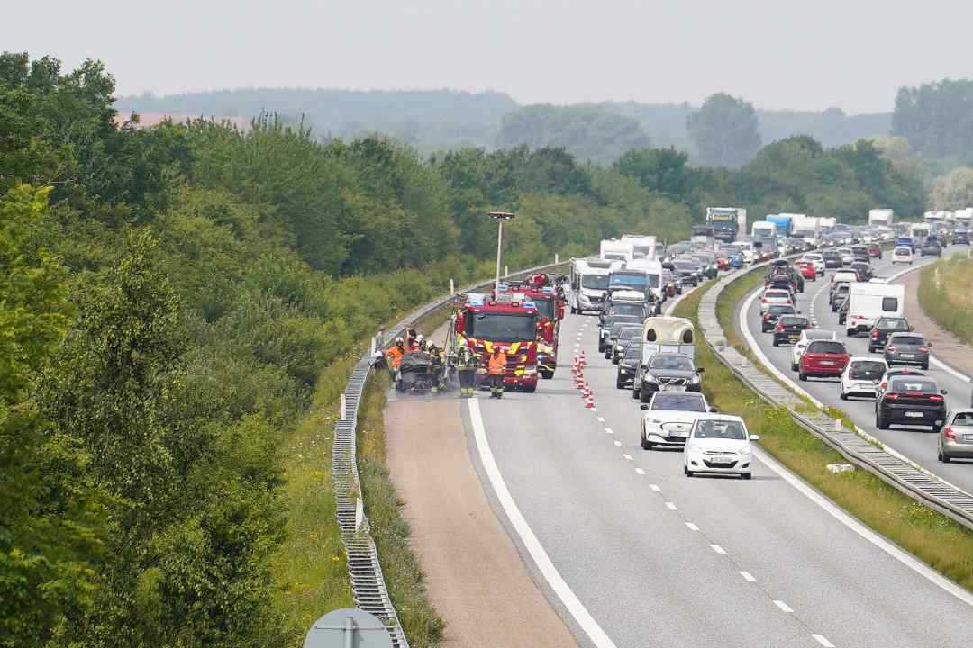 Fjenneeslev: der brud ild i en bil på Vestmotorvejen i mellem Sorø og Ringsted, Branden er opstået i motorrummet. Branden i bilen skaber en del røg ud over motorvejen så hastigheden er sat ned i begge retninger. Der er kikke kø i vestgående retning. Og i østgående retning er der dannet en lang kø. Da det er rejse weekend så er der mange biler på vejen ente ekstra rejsetid på strækningen