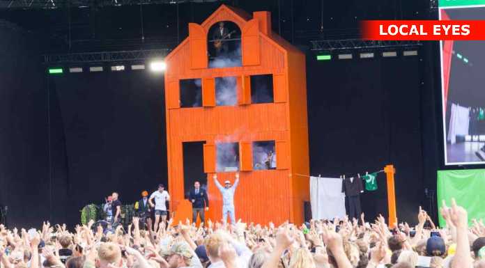 VALBY: Den altid veloplagte Benjamin Hav havde taget familien med i sit hus. Publikum er nyder virkelig hans musik og hans optræden, under koncerten dukkede Suspekt op til Housewarming i hans hus og temperaturen steg på fest pladsen i Valby Parken.