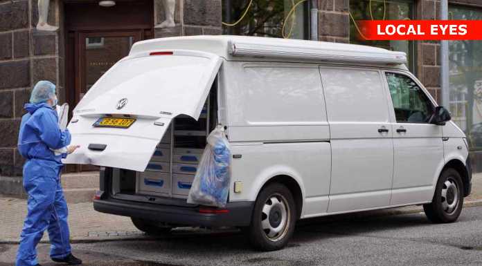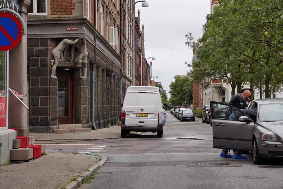 Flere billeder fra stedet viser civile betjente i området, og det ser ud til, at politiets arbejde er koncentreret omkring en kiosk i krydset mellem Dalegade og Jyllandsgade. Her ses teknikere iført blå dragter arbejde både inde i og omkring kiosken.