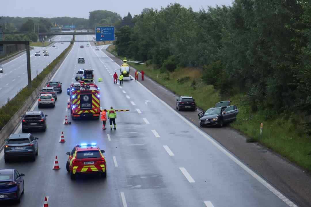 Der er sket store materielle skader, og motorvejen har været spærret helt.