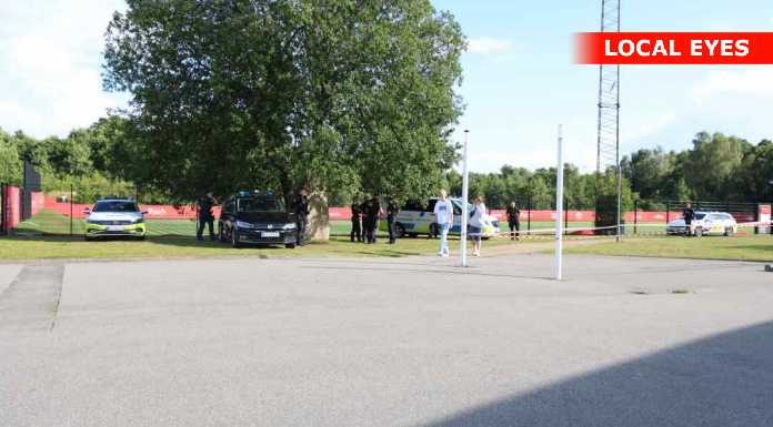 Nordsjællands Politi er til stede med minimum 6 køretøjer.