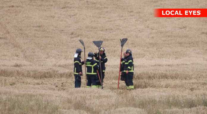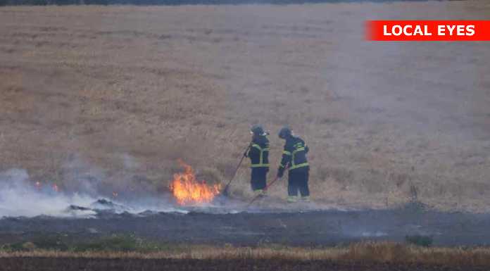 Mange brandkøretøjer ankom til stedet, men det endte med næsten hele marken udbrændte.
