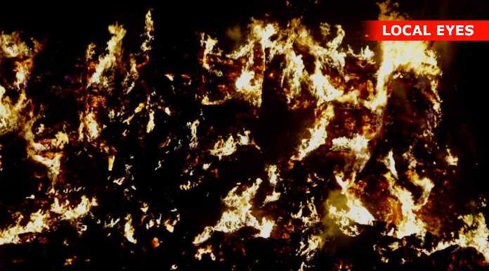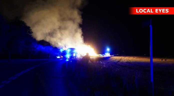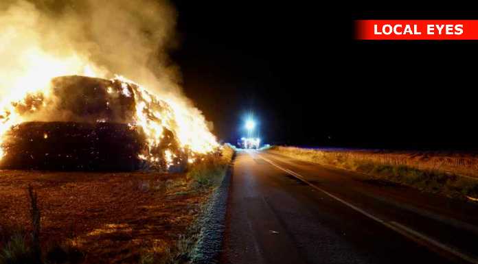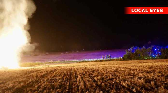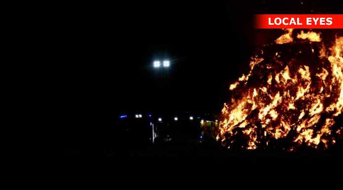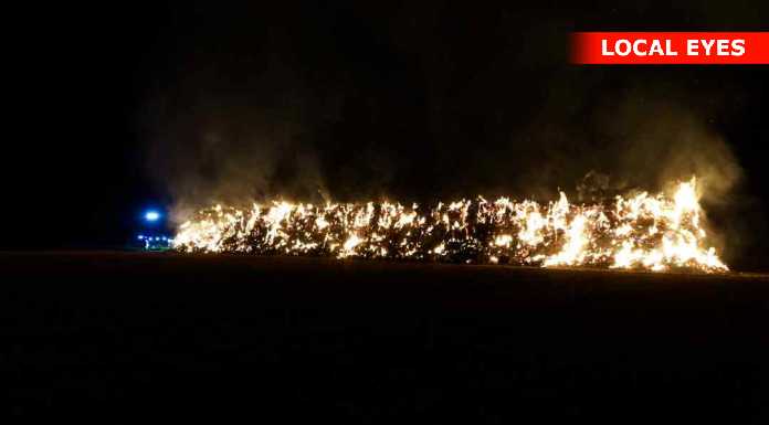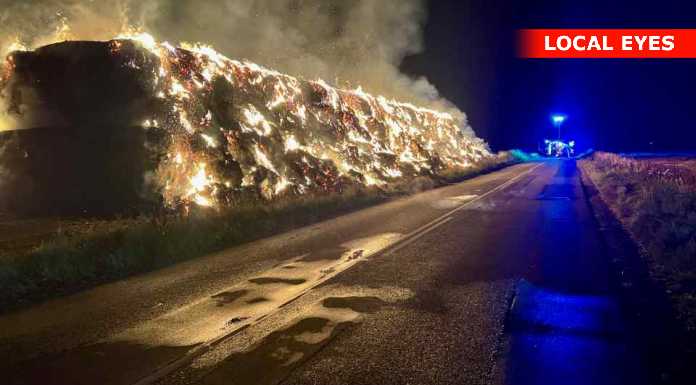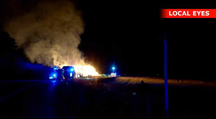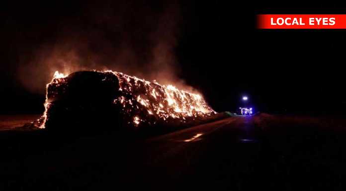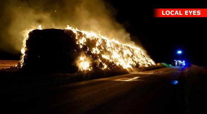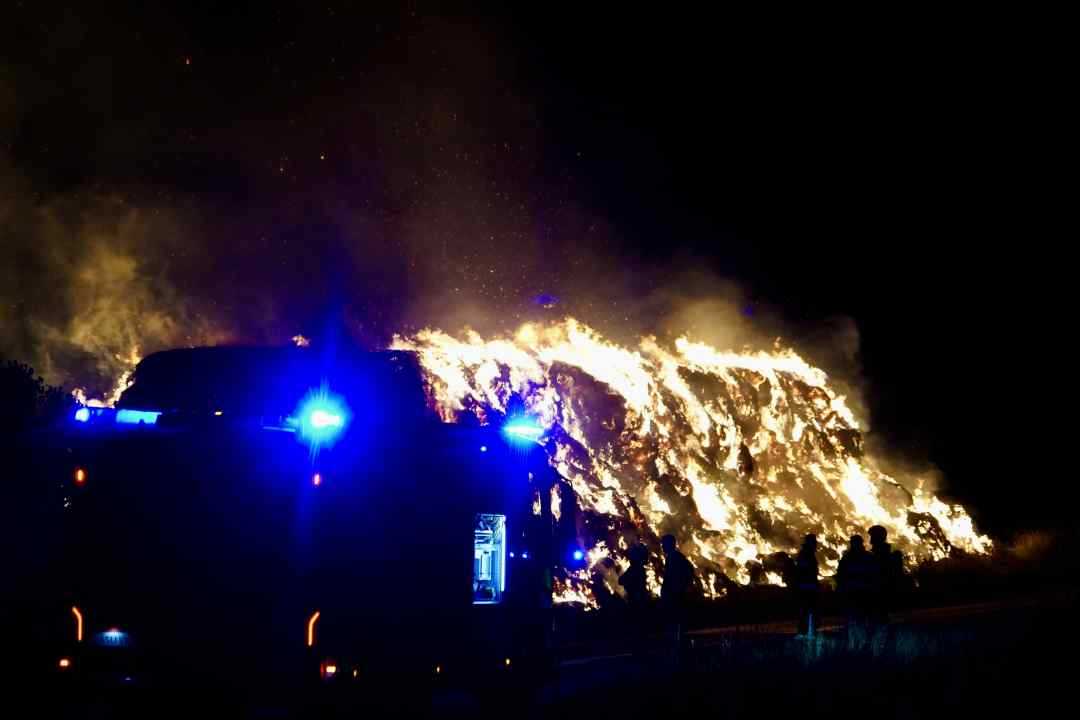 I Odense er 100 halmballer i brand, anmeldelsen kom ved midnatstid og brandvæsnet kom hurtigt frem, men kan intet stille op og lader det hele brænde ud.
