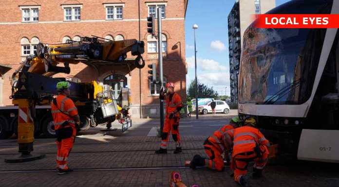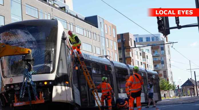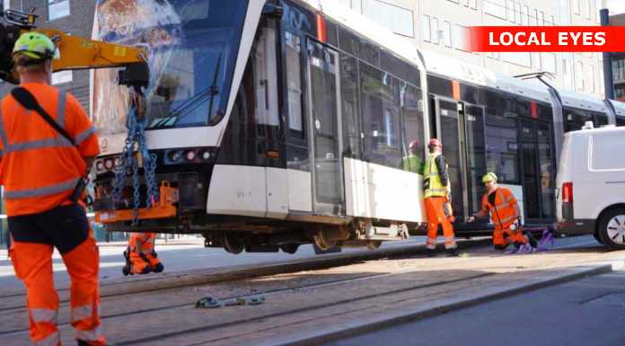 Agency Letbanen løftes på plads onsdag 20. aug 2025 Share on Facebook Tweet on Twitter Banedanmark kom med en kran der kunne løfte letbanen tilbage på sporet. /local eyes/Onsdag 20. aug 2025 / 105435
