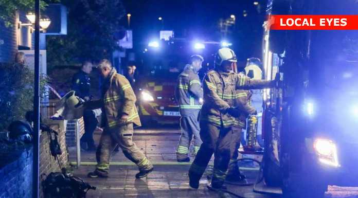 Politi og brandvæsen er, natten til søndag, talstærkt til stede på Johannes V. Jensens Alle – meget tæt på højhuset Domus Vista.