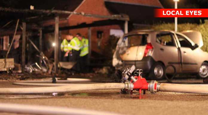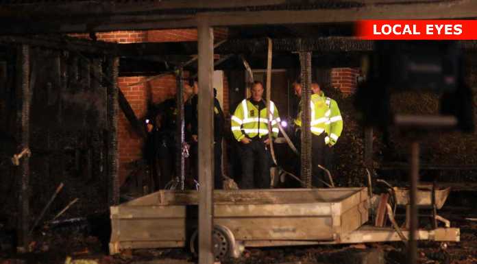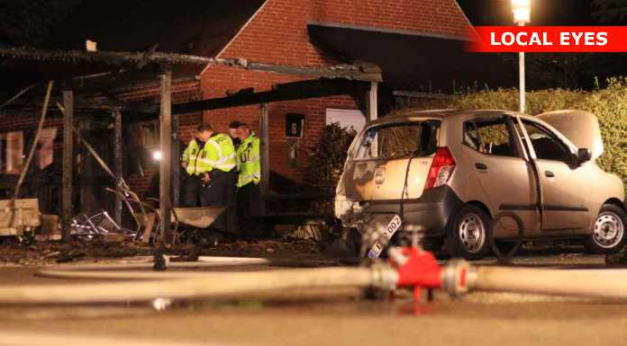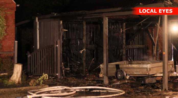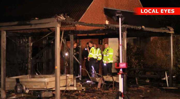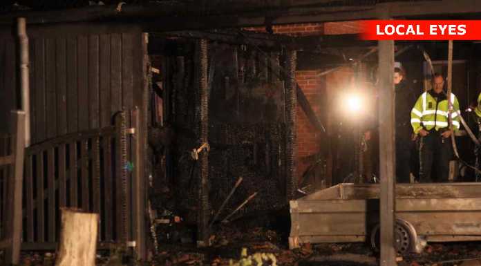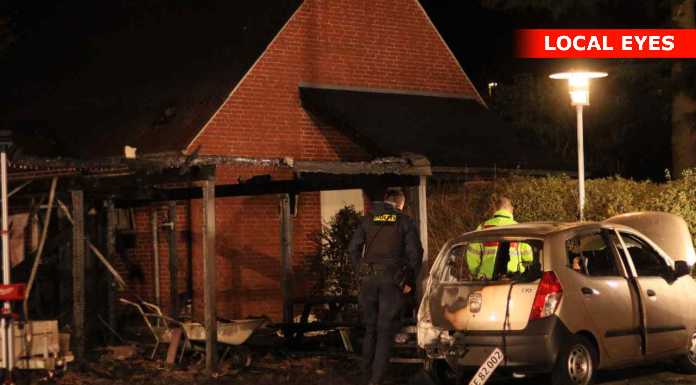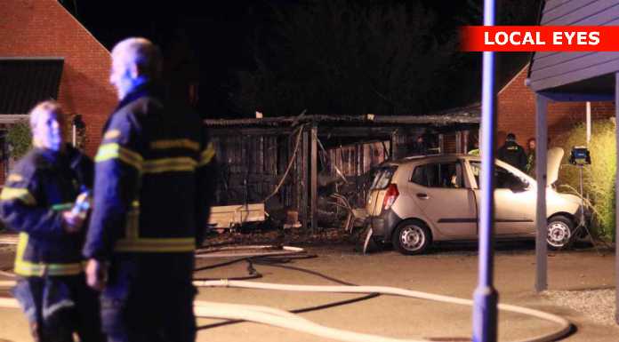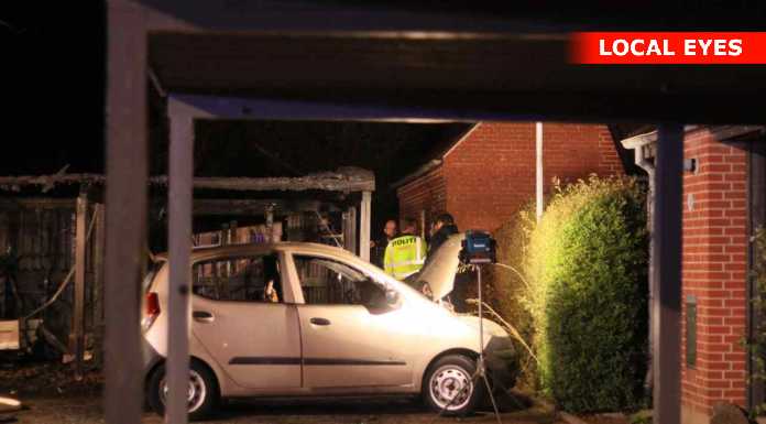 Ifølge vidner stod skuret pludseligt i flammer, og ilden spredte sig hurtigt til en bil, hvoraf halvdelen udbrændte.