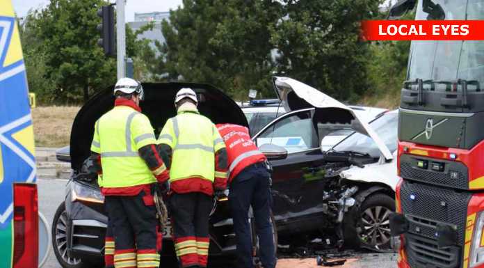 Mandag middag rykkede brandvæsnet, redning og politiet ud til melding om et færdselsuheld i krydset i Nordhøj/Lyngvej i Køge.