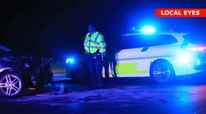 2 biler er stødt sammen i Gudme hvor en af den er endt helt ude på en mark, næsten 20 meter fra sammenstød stedet.