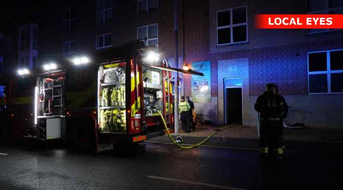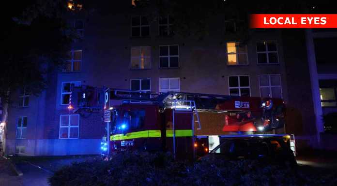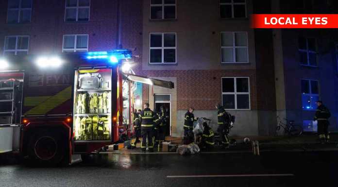I Odense har der her natten til fredag været brand i en lejlighed på 3 sal. Varmen var så kraftig så vinduet gav efter og så sprang katten ud. Politi og Brand indsatsleder har bekræftet det over for Local Eyes på stedet.