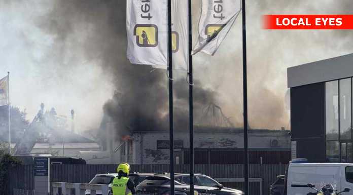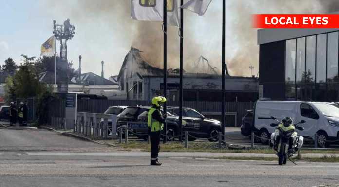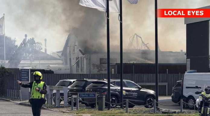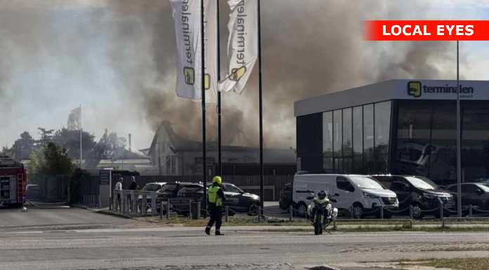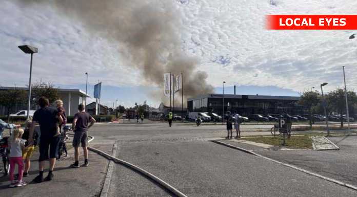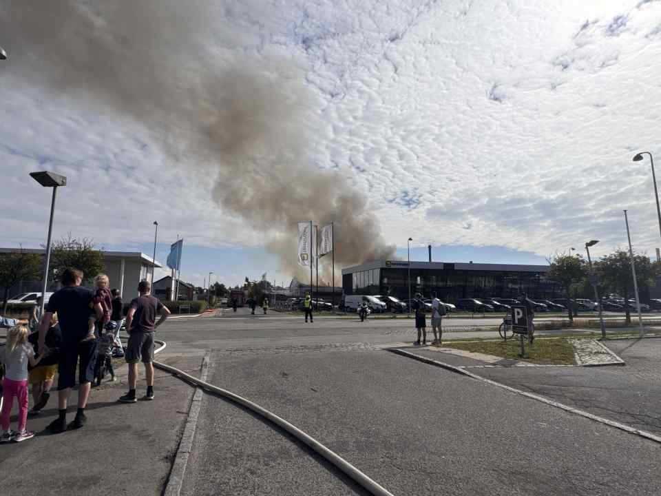 En brand på et autoværksted på bjørnbaksvej er i brand. Røgen fra branden har medført at en stor del af Englandsvej er blevet spærret og folk er blevet rådet til at lukke døre og vinduer.
