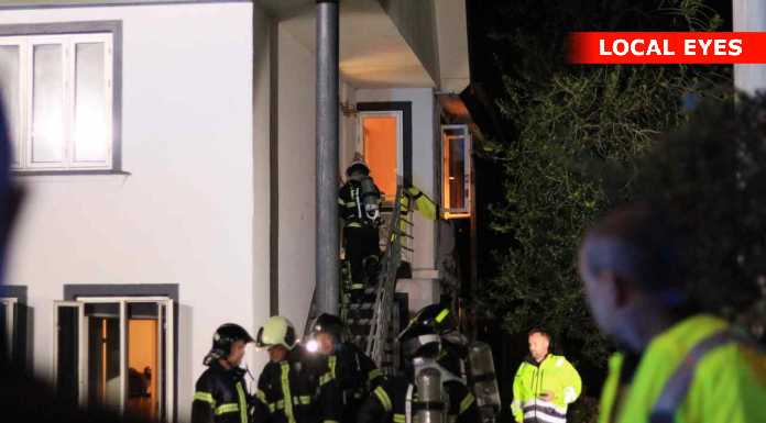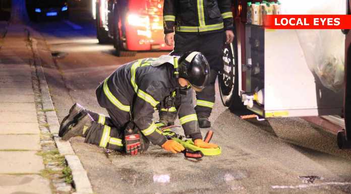 Der var synlige flammer og røg, en tydelig lugt af noget brændt fik beboere til at slå alarm.
