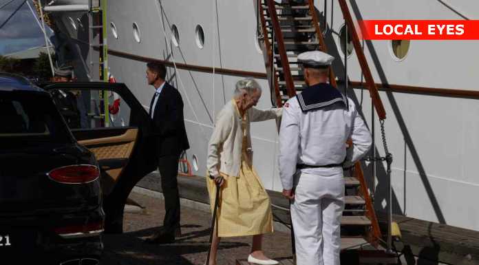 Lørdag formiddag anløb kongeskibet Dannebrog Holbæk Havn. Klokken omkring 10.00 lagde skibet til, og ombord var Hendes Majestæt Dronning.
