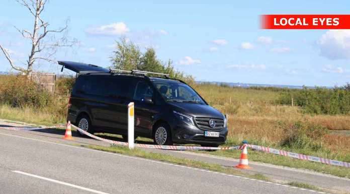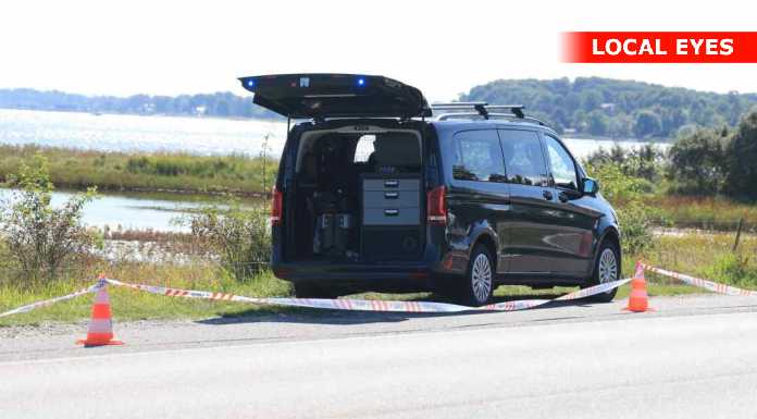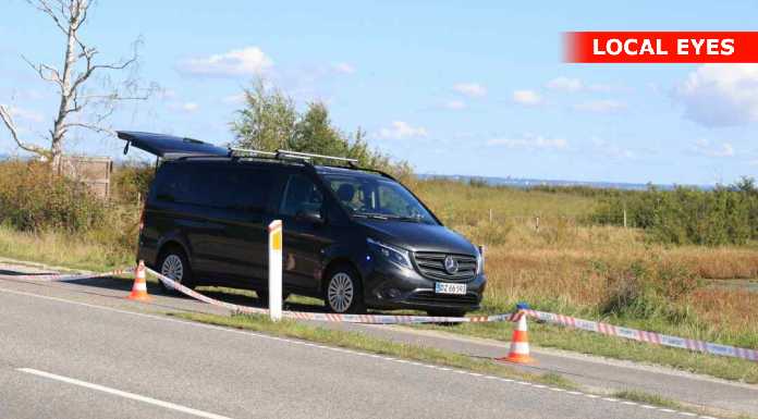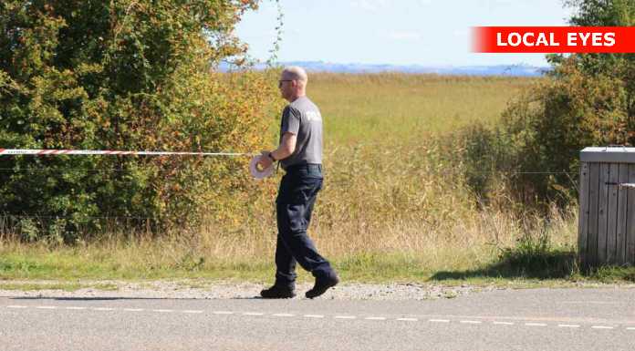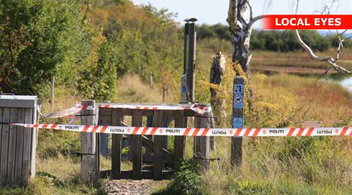 NIVÅ:Politiet er til stede ved Nivå strandeng med 2 teknikker biler et større større natur område er spæret ved strandengen.