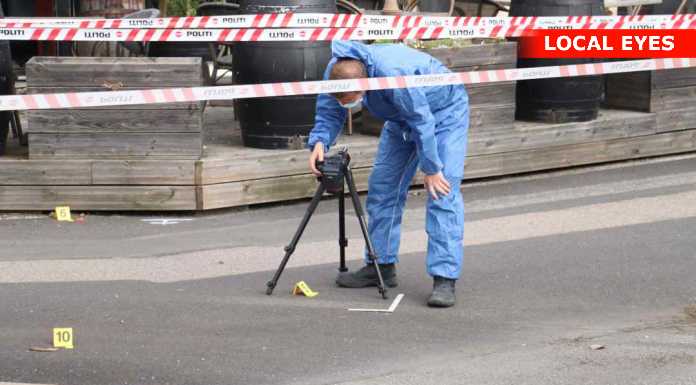 Tirsdag formiddag var politiet, teknikere fra NKC og Beredskabsstyrelsen samt EOD til stede ved en restaurant på hjørnet af Karlslunde Strandvej og Strandgårdsvej.
