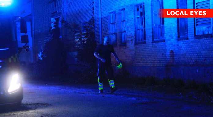 Tirsdag aften rykkede brandvæsen, politi og ambulance ud til en gammel fabrik på Gl. Grandvej i Nørre Aaby.