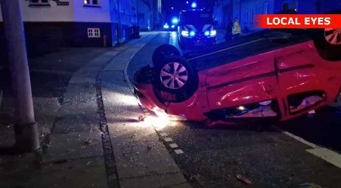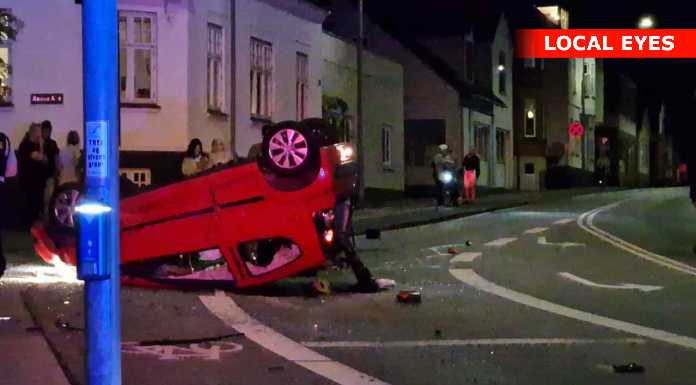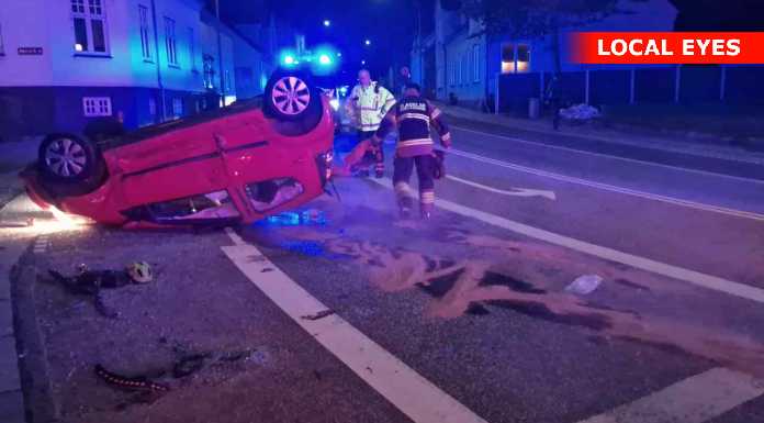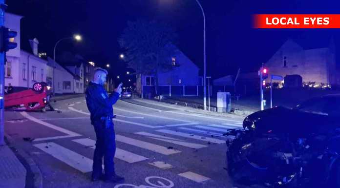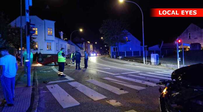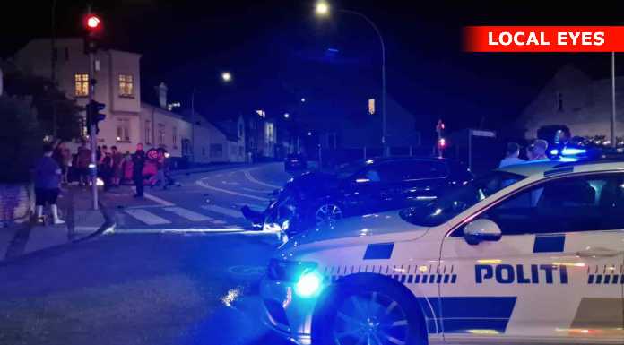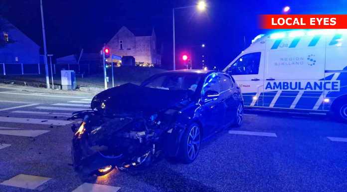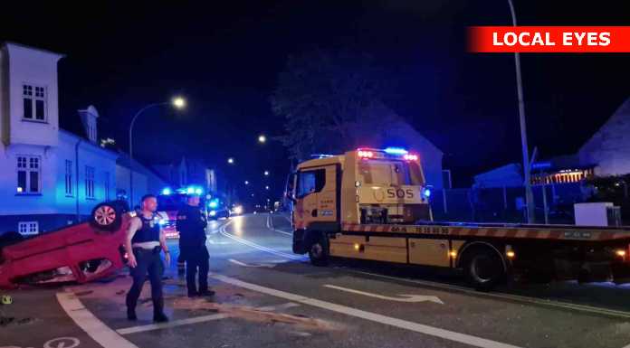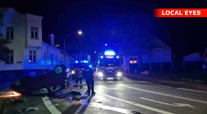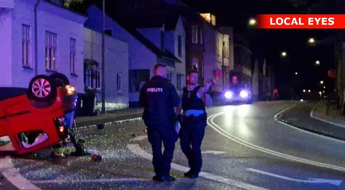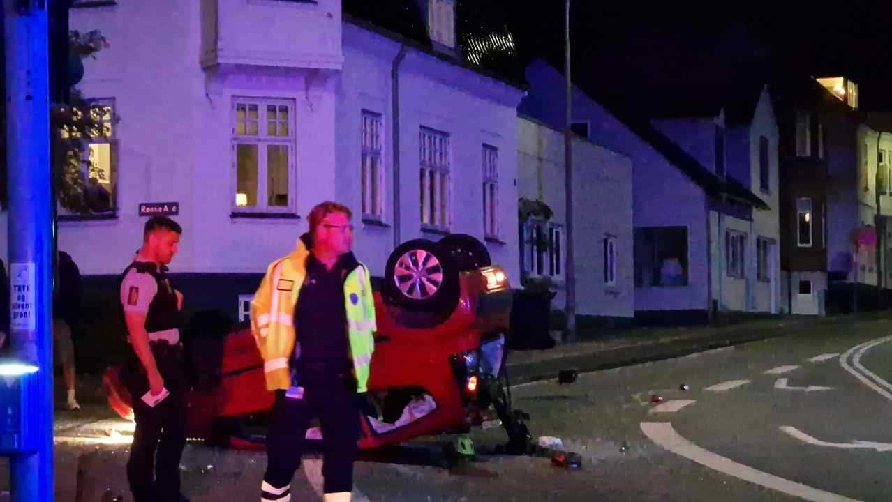 Tirsdag aften skete der et voldsomt færdselsuheld i krydset Mathisensvej – Norvangen i Korsør, hvor to biler var kørt sammen, så den ene bil landede på taget.