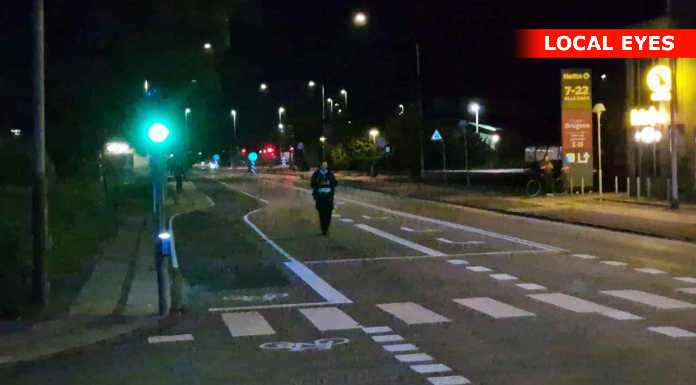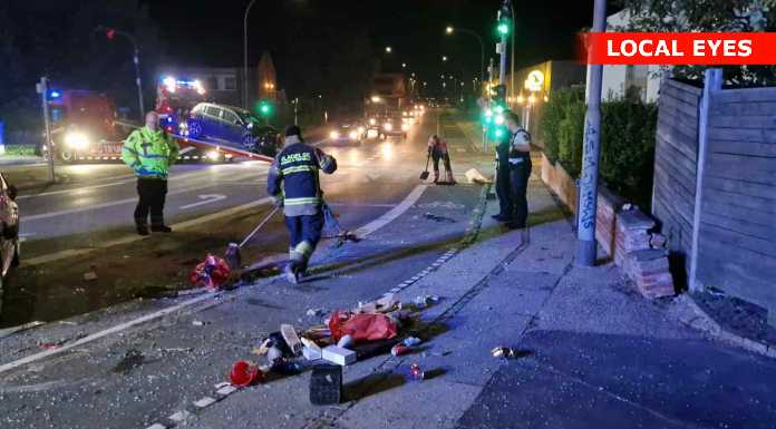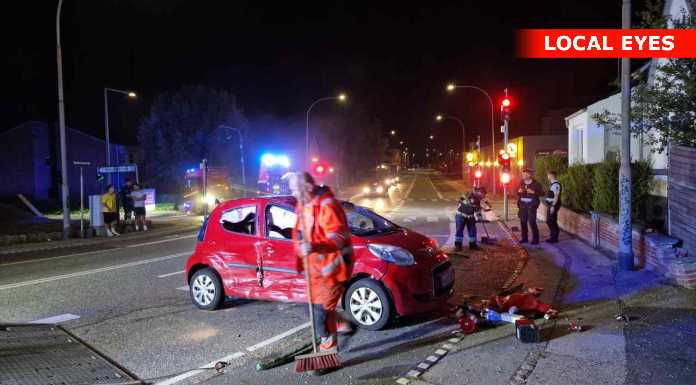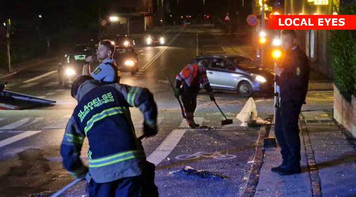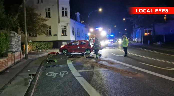 Uheldet skete i krydset, hvor den ene bil formentlig er kørt over for rødt, hvorved den blev ramt af en anden bil med så stor kraft, at den ene bil blev slynget flere meter væk, hvor den landede på taget på en cykelsti.