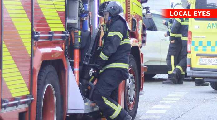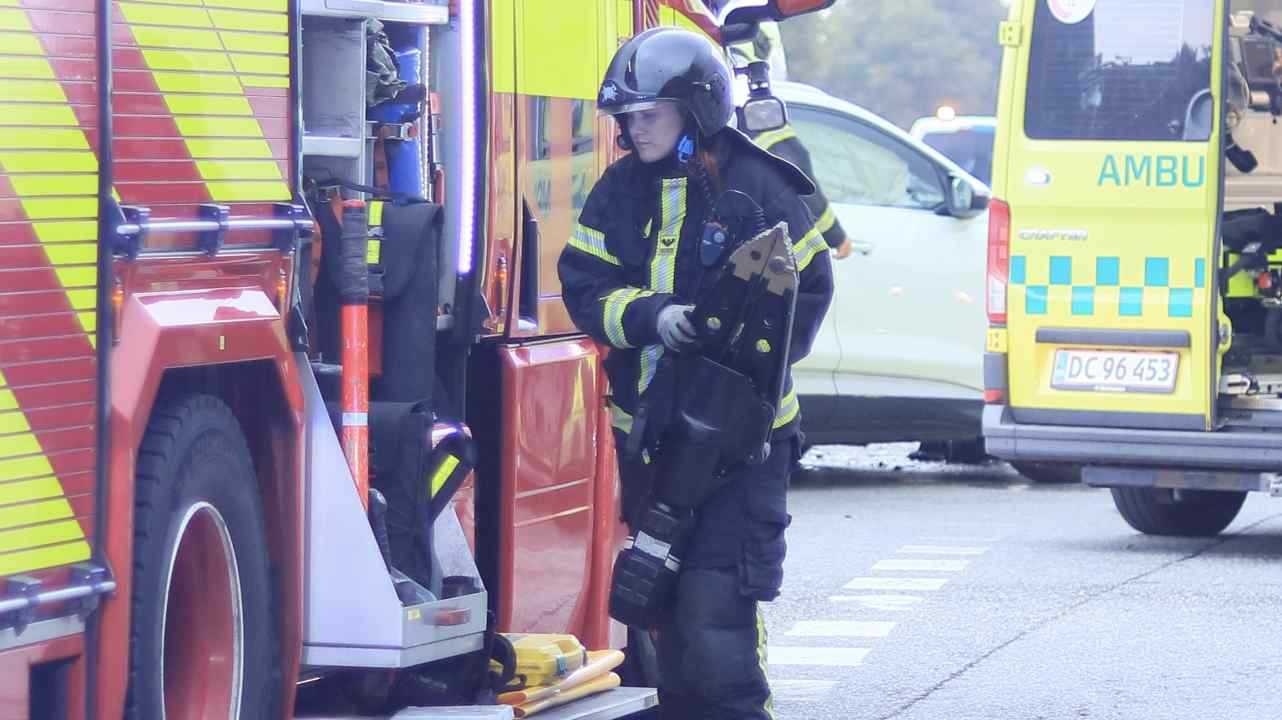 Ambulance og politi var også på stedet, mens trafikken blev påvirket under redningsarbejdet.