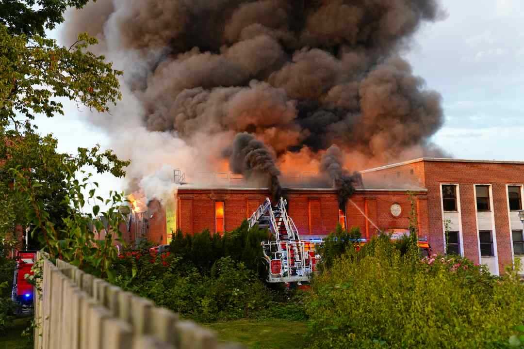 Branden udvikler sig pludselig voldsomt og en bygning bliver overtændt.