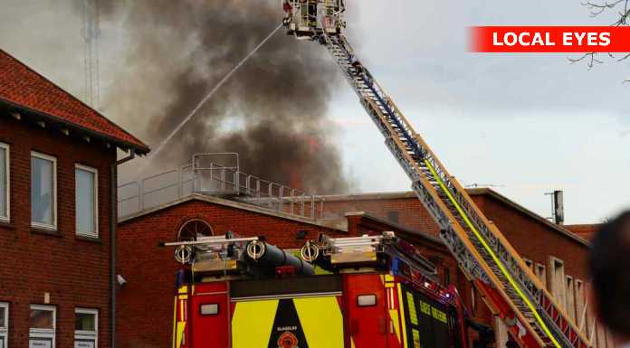 Politiet advarer også folk, at de skal lukke døre og vinduer i området, da der stiger en enorm røgsøjle op fra stedet.