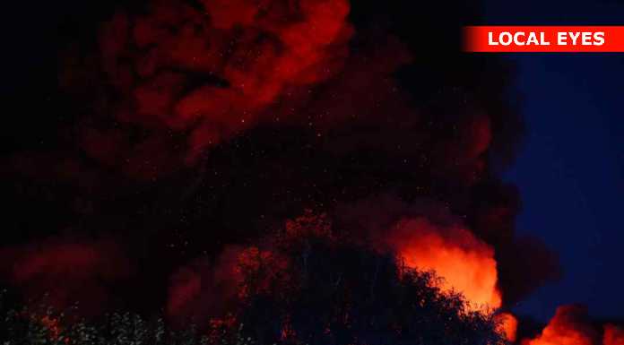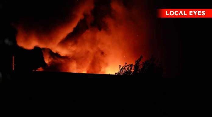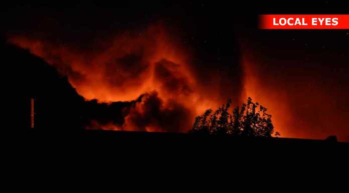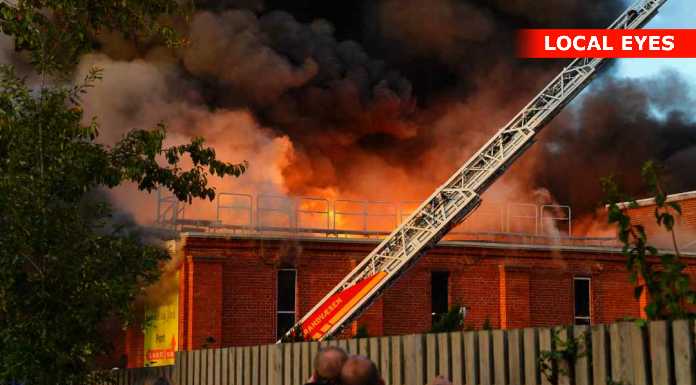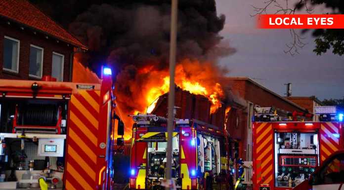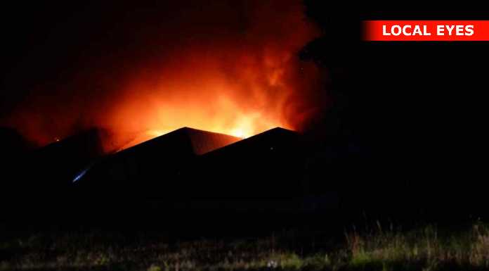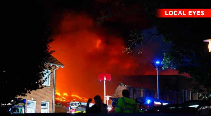 Omkring klokken 23:00 var der naboer til branden, som blev meget bekymret, da nogle brændende bygninger styrtede sammen lige uden for deres haver og høje flammer stod op.