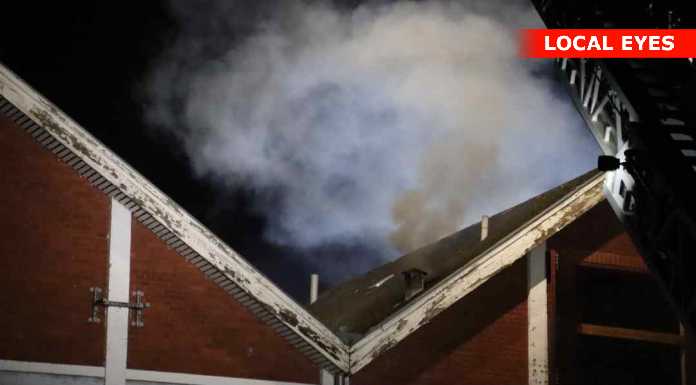 På stedet var der røgudvikling fra taget, og på et tidspunkt udviklede den sig i det ene hjørne af bygningen.