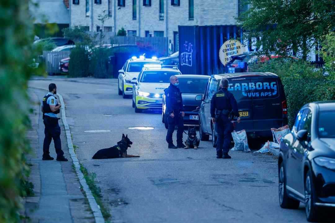 Politiet afsøger lige nu området med hunde, men det er endnu uklart, hvad årsagen til den massive tilstedeværelse er.