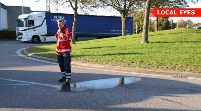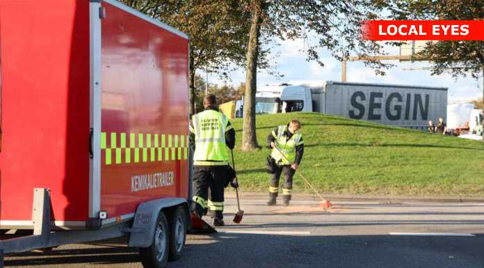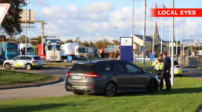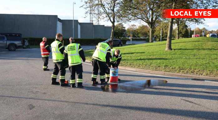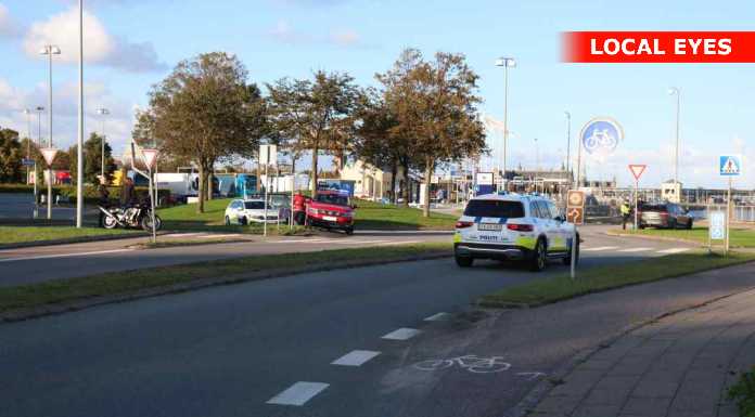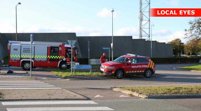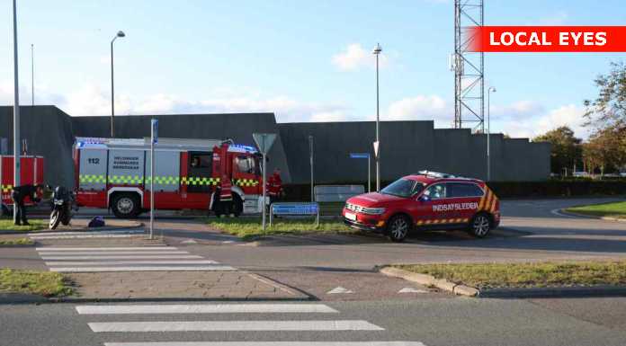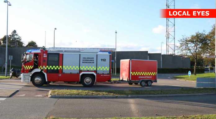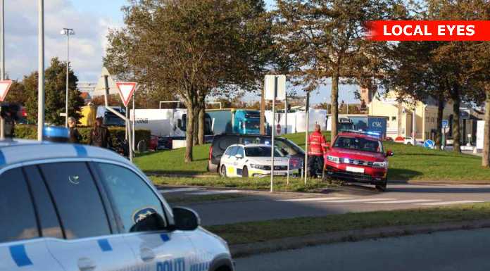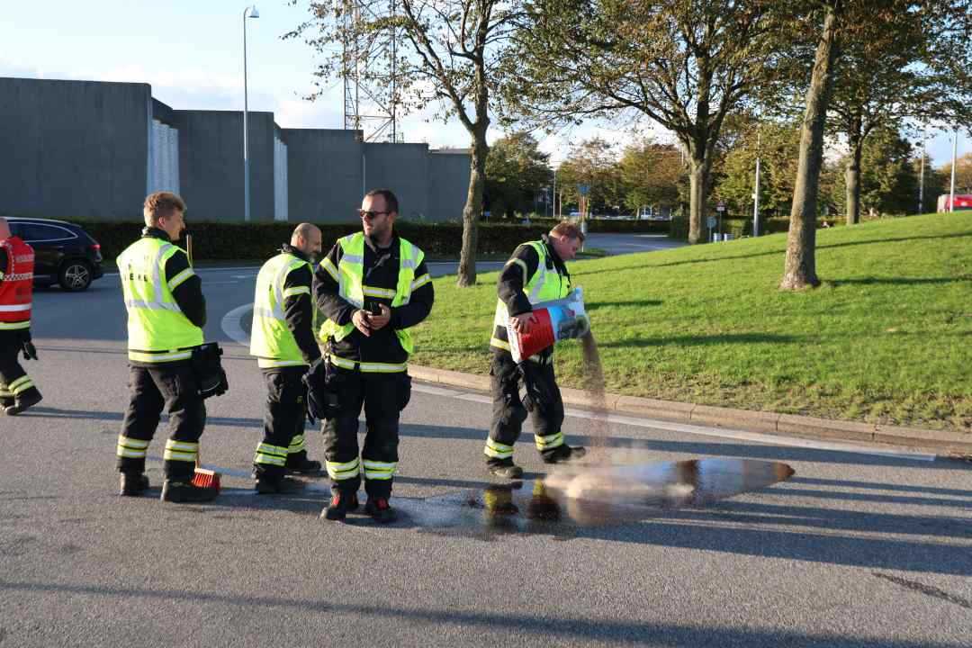 HELSINGØR: Helsingør Kommunes Beredskab og Nordsjællands Politi var mandag eftermiddag til stede i rundkørslen ved Færgevej og Flynderborgvej.