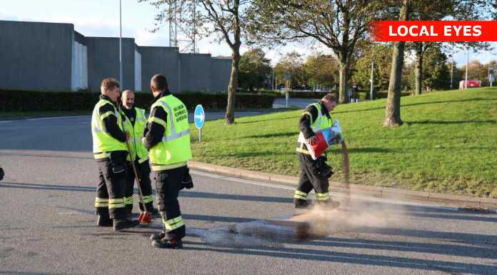 Helsingør Kommunes Beredskab hældte kattegrus ud på spildet.