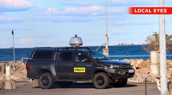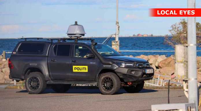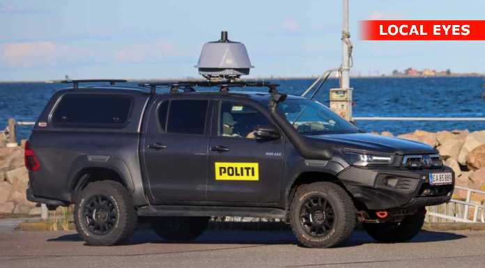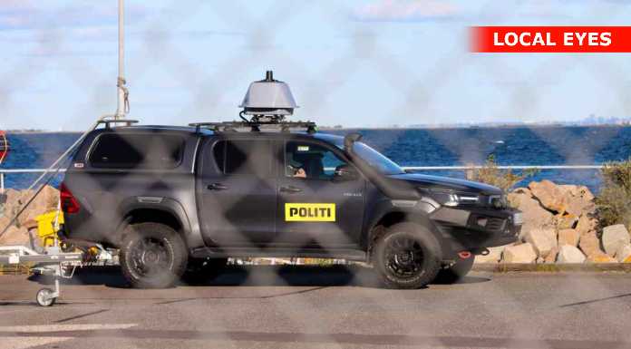 AKS (Aktionsstyrken) er tirsdag eftermiddag, omkring kl. 16:20, til stede med en anti-drone-bil ved Kystvejen, langs Københavns Lufthavn.