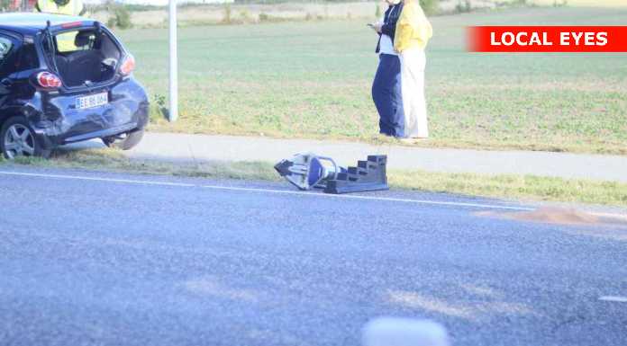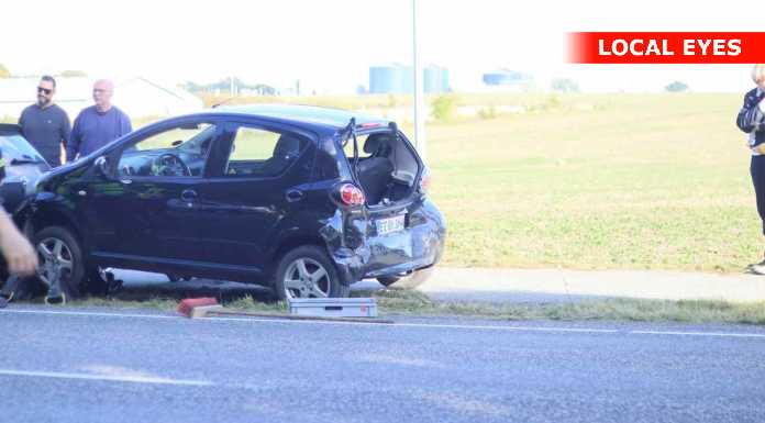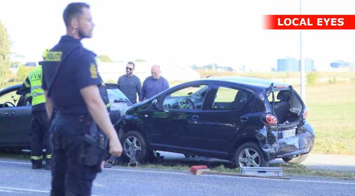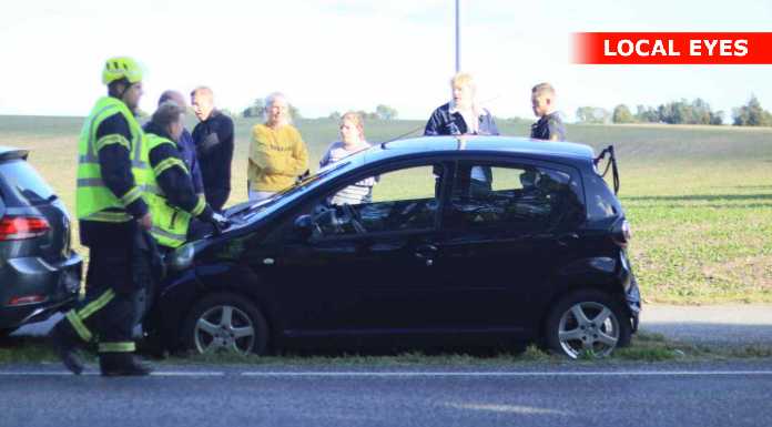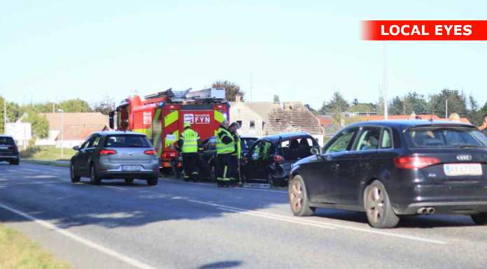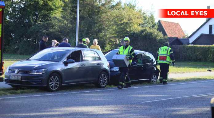 Tre biler er involveret i uheldet, og en af dem er kraftigt medtaget efter sammenstødet.