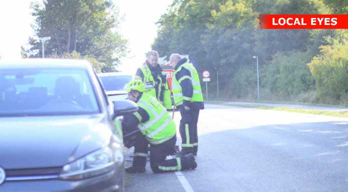 Politi og redningsmandskab er på stedet, mens trafikken er påvirket i området.
