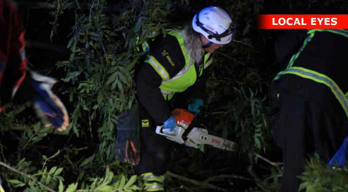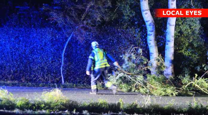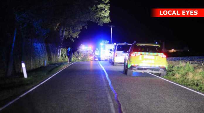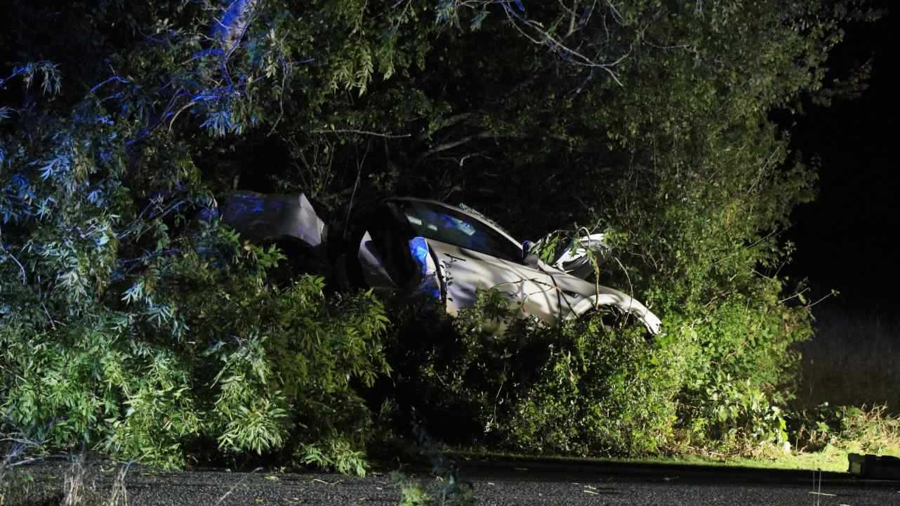 En bil var kørt ind i et træ og blev totalt foldet sammen. Føreren måtte klippes fri af brandvæsnet, der også var nødt til at fælde et træ for at få adgang til bilen.