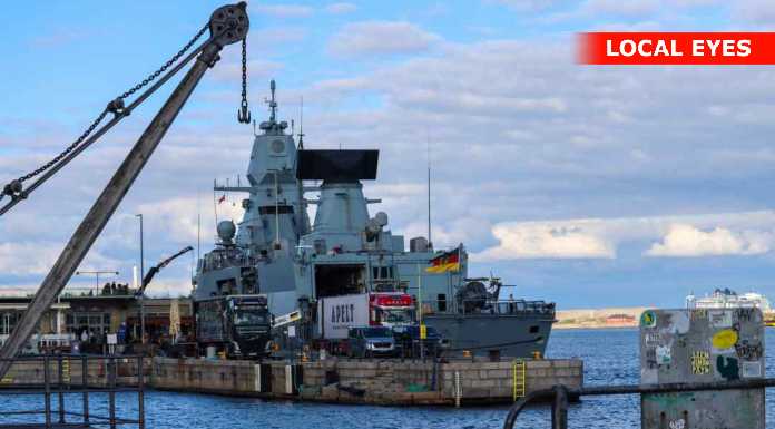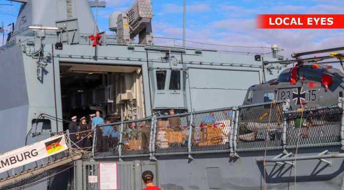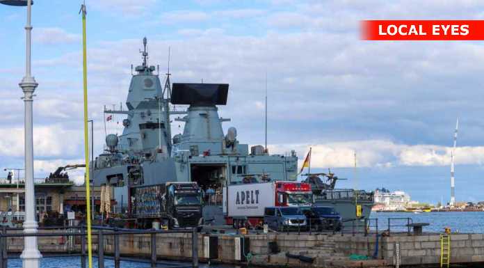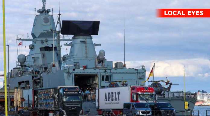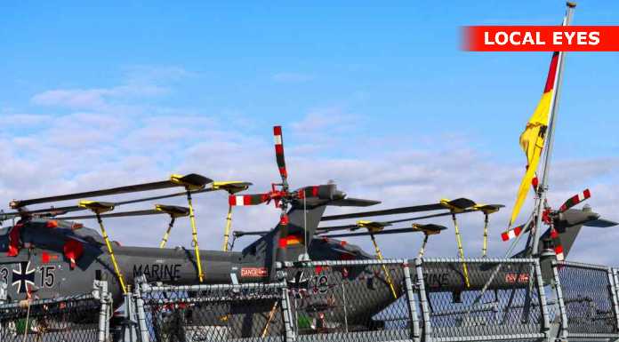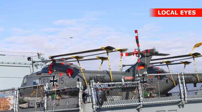 Der er tale om et meget stort krigsskib. Skibet medfører to tyske militærhelikoptere.