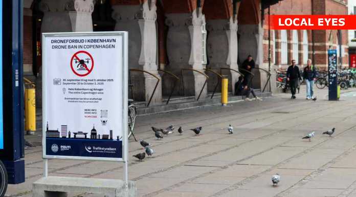Et drone-forbudsskilt er blevet opstillet foran Københavns Hovedbanegård.