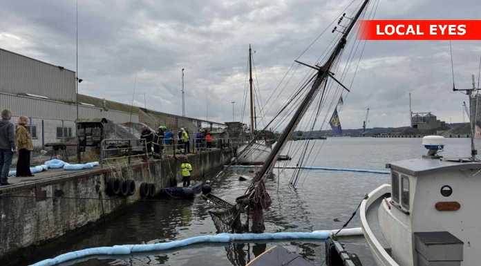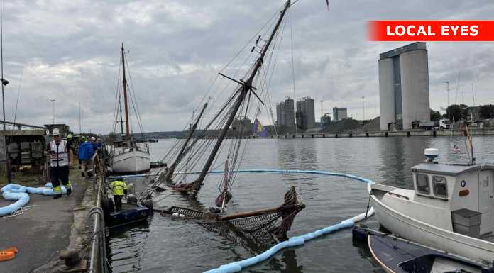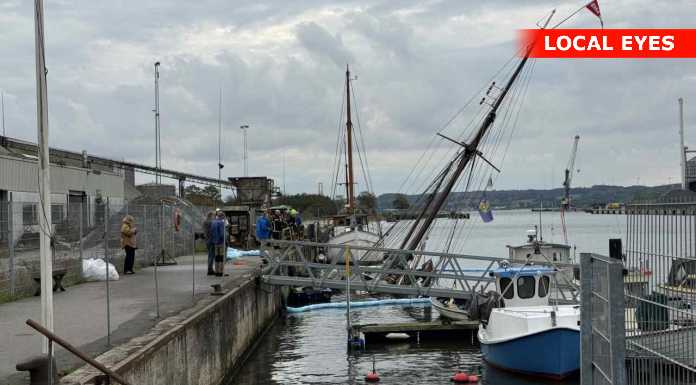 Agency Stort træskib sunket i Aabenraa tirsdag 30. sep 2025 Share on Facebook Tweet on Twitter Brand og redning arbejdede i formiddags på højtryk for at inddæmme forurening fra et stort træskib som er sunket ved Nyhavn i Aabenraa /local eyes/Tirsdag 30. sep 2025 / 105741