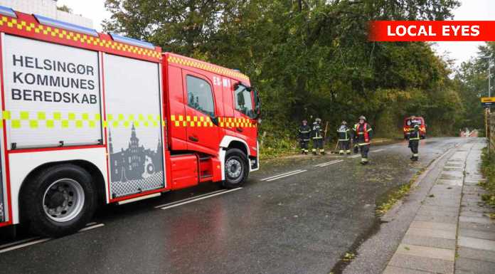 HELSINGØR: Helsingør Kommunes Beredskab har flere køretøjer på gaden som følge af Stormen Amy's rasen over byen.