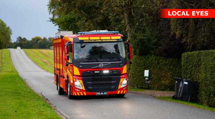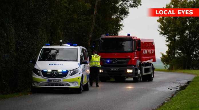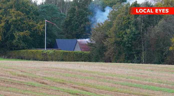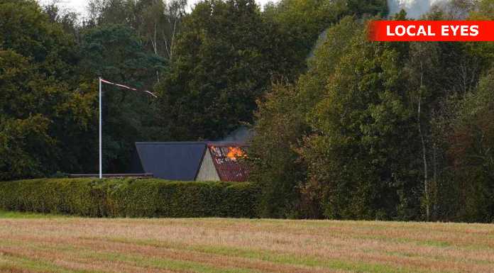 Høng: lørdag eftermiddag advare politiet om kraftig røg fra en gårdbrand på Solbjergvej ved Høng. De anbefaler at man lukker døre og vinduer på x. Brandvæsnet er talstærkt til stede ved branden med køretøjer fra forskellige stationer. På afstand kan man se at ilden er gået igennem taget på en bygning.
