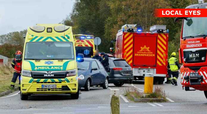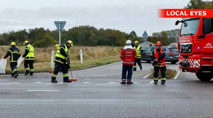 To personer blev efterfølgende kørt til skadestuen. Hvordan uheldet skete, vides endnu ikke.