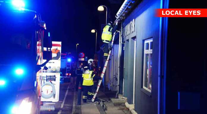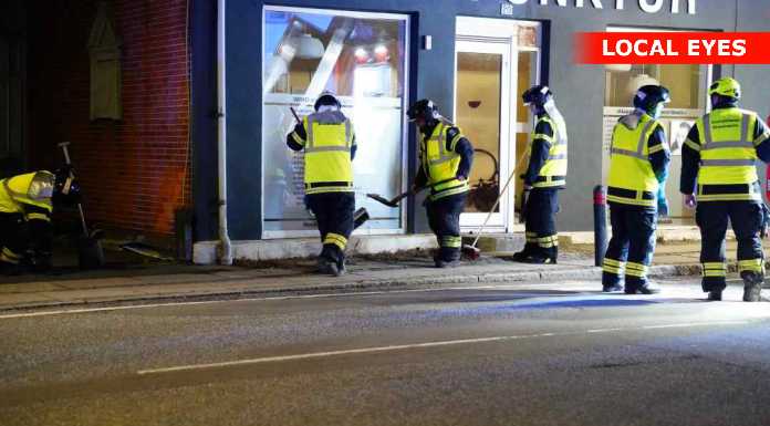 Høng Onsdag aften Klokken 23:34 kom en voldsom melding Om ild i butik og en lastbil var kørt ind i butikken og den var ved at styrte sammen . Vestsjællands brandvæsen station Gørlev ankom til stedet. Man kunne dog konstatere at der var ikke nogen lastbil eller brand ej heller at butikken var ved at styrte sammen. Lastbilen havde ramt tagrenden og havde slået lidt af taget samt bogstaver på bygningen. Lastbil chaufføren valgte dog ikke at blive på stedet men at køre der fra. det er dog uvist om chaufføren har været velviden om at have ramt butikken. Brandvæsnet får tjekket bygningen igennem og fik Ryddet lidt op på stedet. der var mindre skader på bygningen
