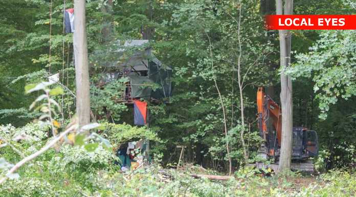 Med hjælp fra bla. en mobil tårnkran, fik politiet fjernet og anholdt i alt 12 aktivister, som i længere tid havde opholdt sig i og omkring træerne, i forsøget på at forsinke Vejdirektoratets arbejde med at rydde en del af området. Rydningen er nødvendigt for at give plads til det kommende byggeri af Kalundborgmotorvejens 3. og sidste etape