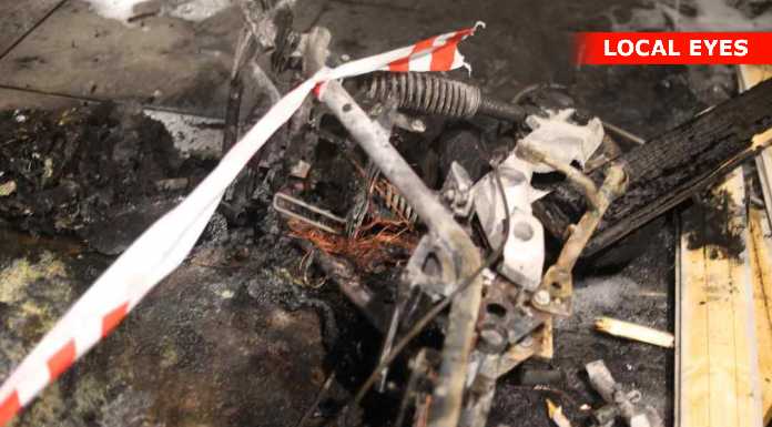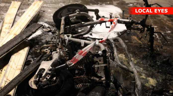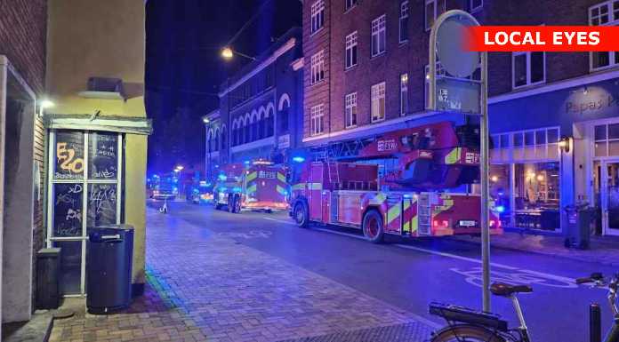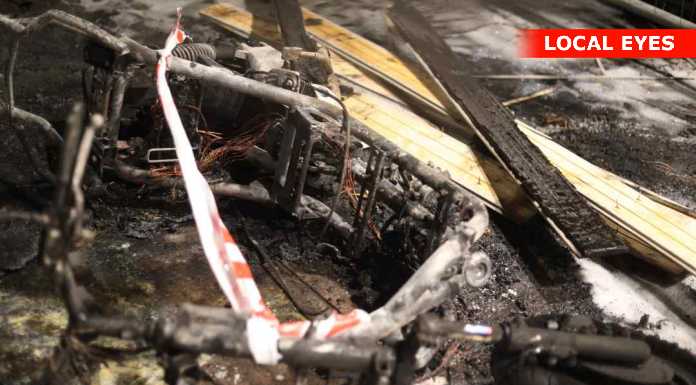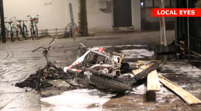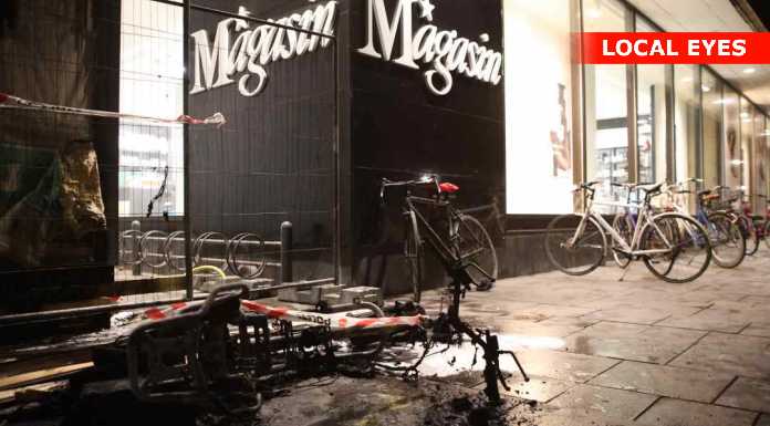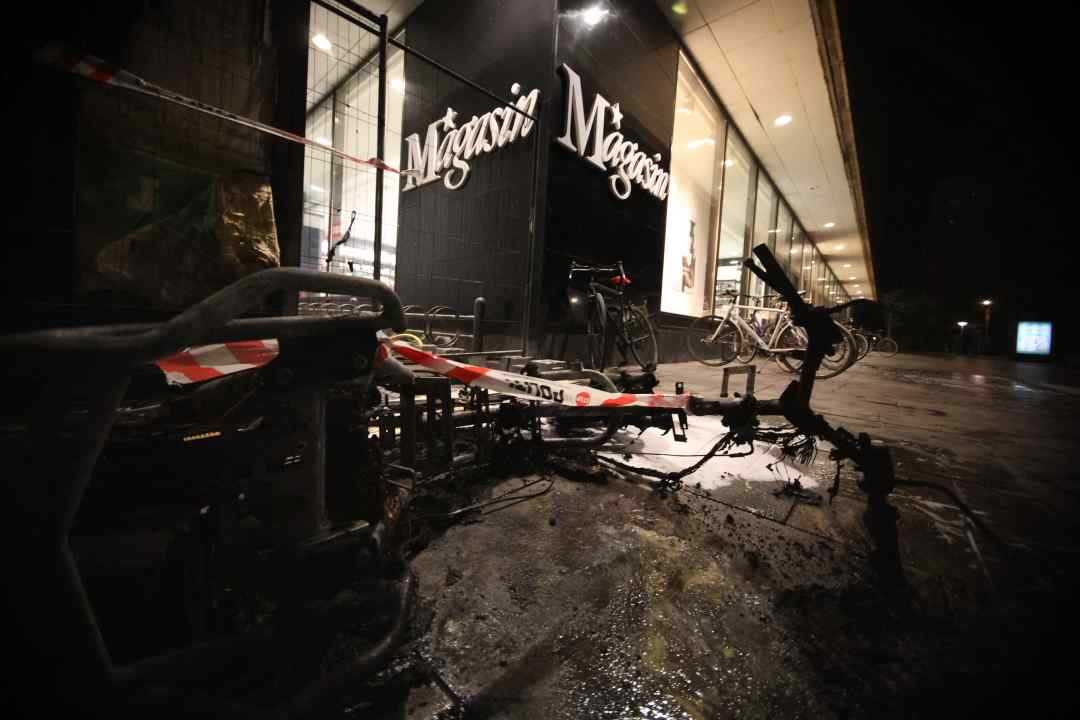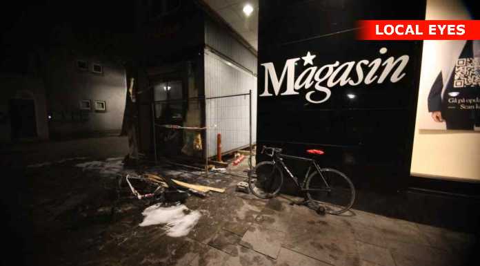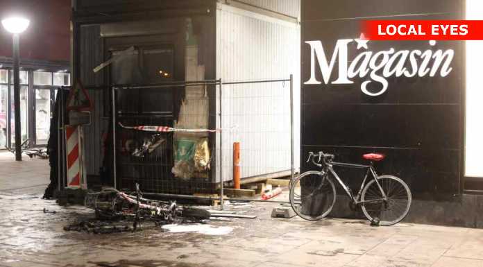 Søndag aften klokken 22.18 lød meldingen om brand i en knallert få meter fra Magasin i Odense.