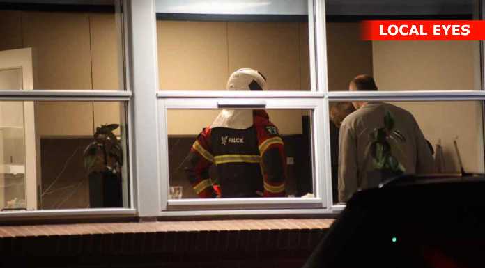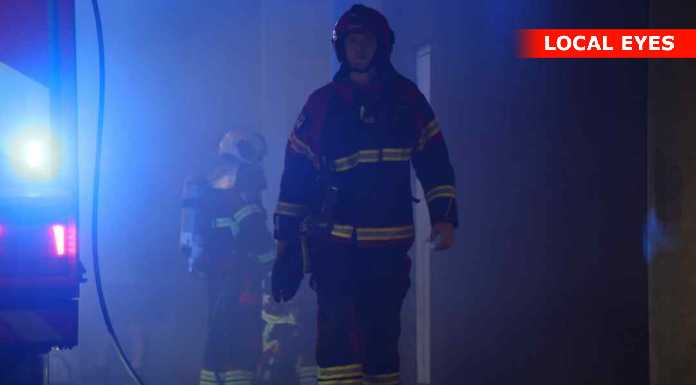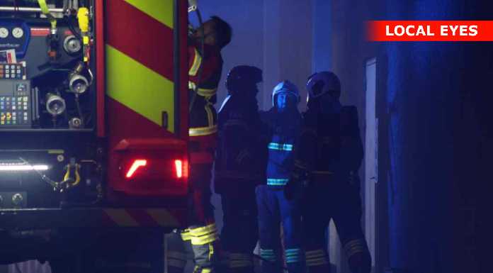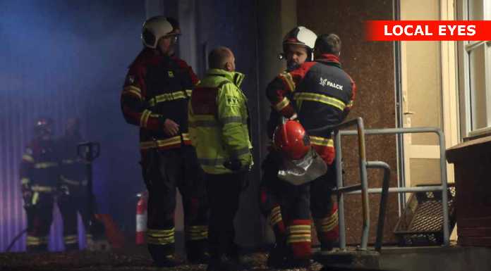 På stedet var der en kraftig lugt af krudt og røg, mens brandfolk arbejdede på at undersøge forholdene og sikre området.