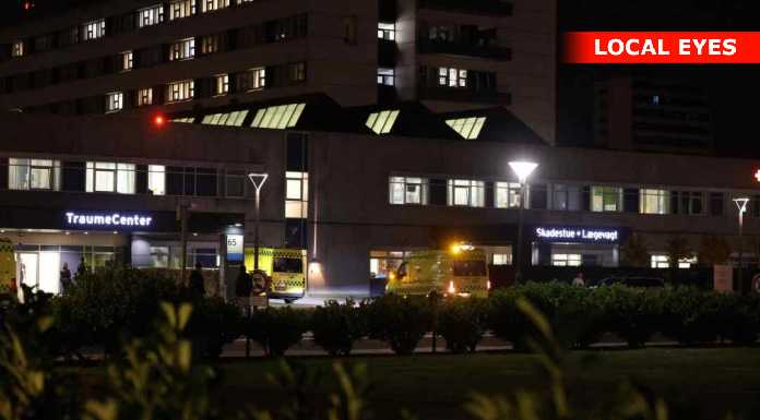 Odense Universitetshospital (OUH) blev midlertidigt lukket ned og sat under bevogtning, mens en større gruppering dukkede op omkring hospitalet.