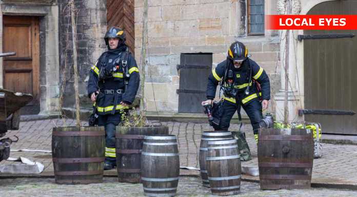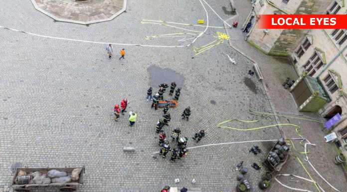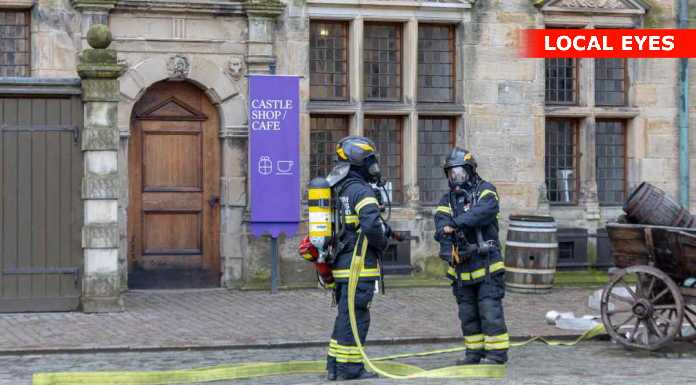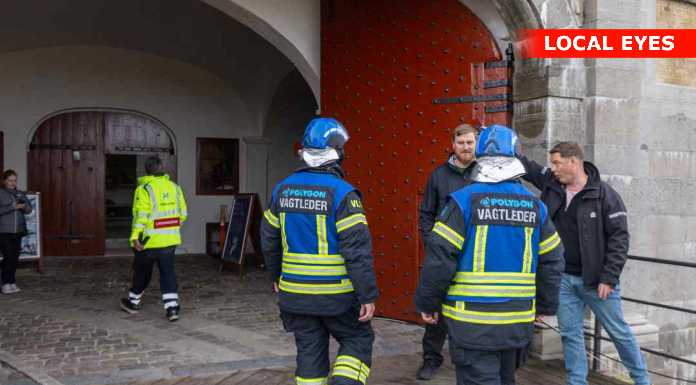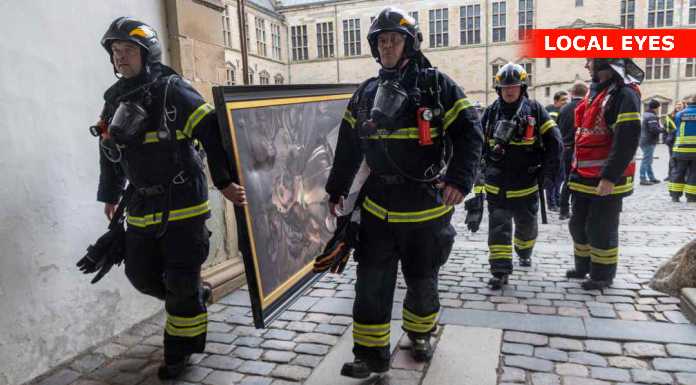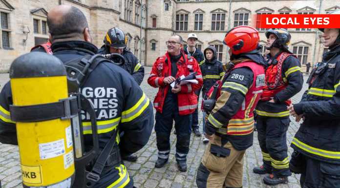 Der blev nemlig afholdt en stor brandøvelse på slottet.