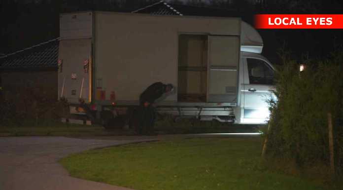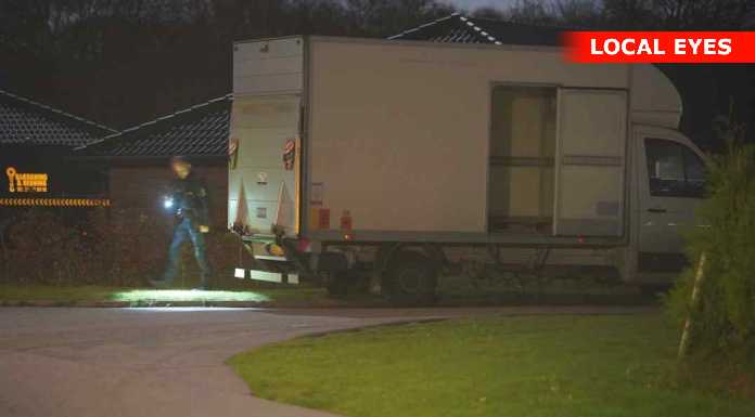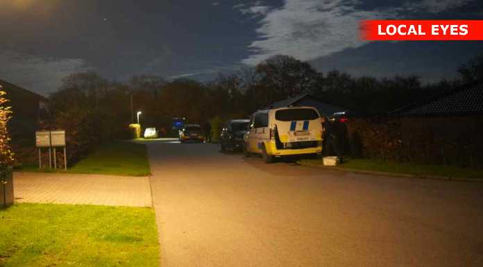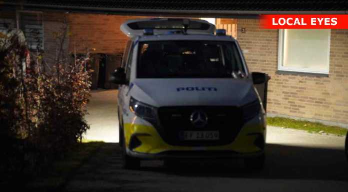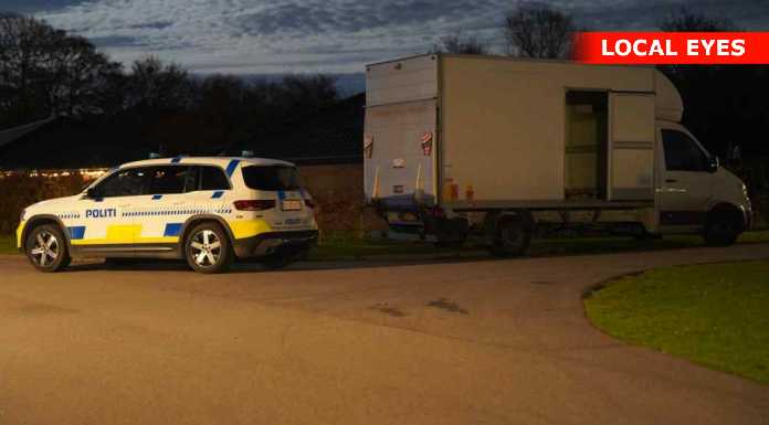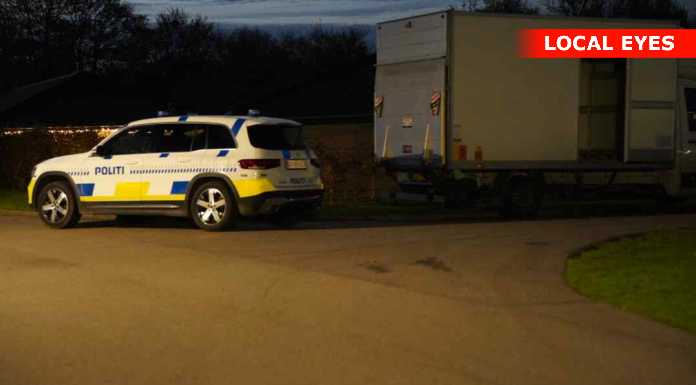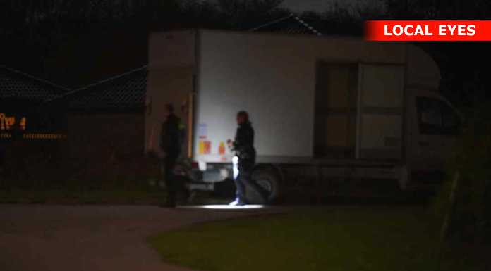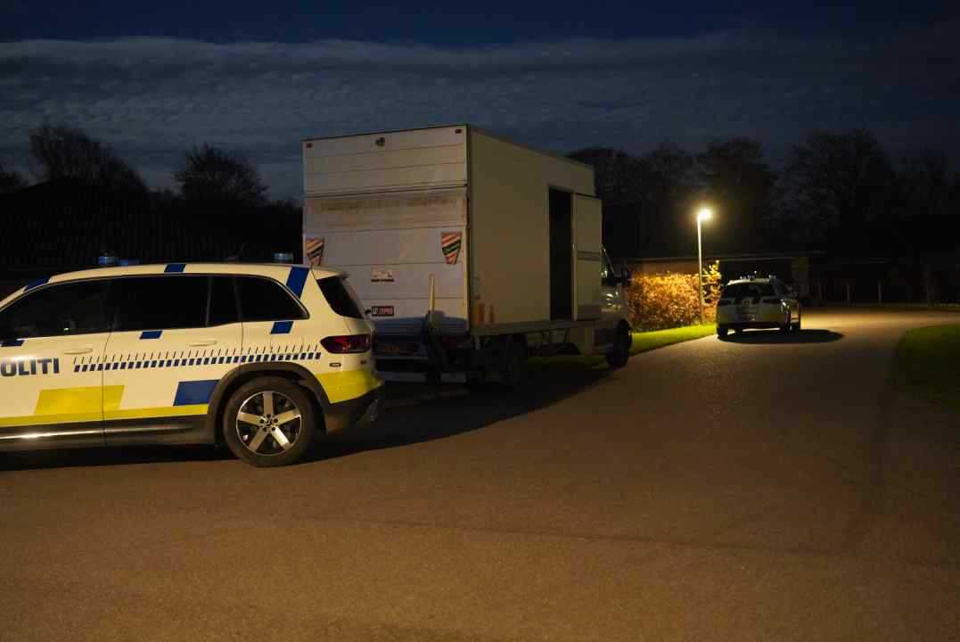 Onsdag aften er flere patruljer tilstede på Conradsvej i Faxe. De arbejder inde i et hus samt ved større varebil undersøges. Yderligere ankommer en kassevogn fra bjægningsfirma som bakkes ind i indkørslen.Årsagen kendes ikke