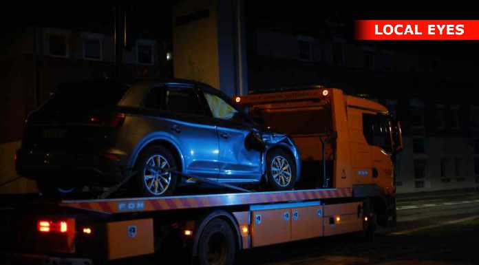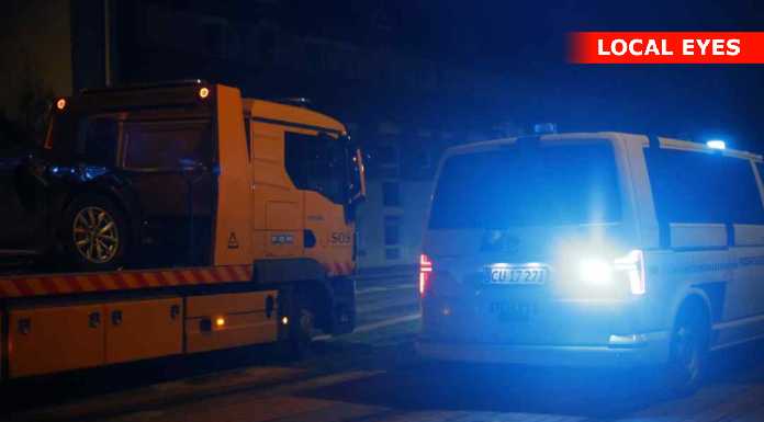 Der var ingen ambulance på stedet, og ingen personer meldes umiddelbart kommet til skade.
