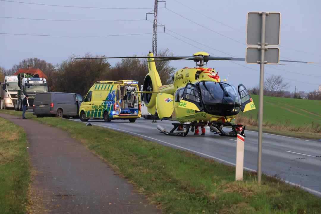 Omkring kl 07:10 blev politi og redning samt lægehelikopteren kaldt ud til et voldsomt uheld på rute 22 Slagelse landevej mellem Kalundborg og Rørby på stedet viste det sig at to varevogne af ukendte oversager hade ramt hinanden frontalt en person blev fløjet til Rigshospitalet mens den anden blev kørt med udrykning på sygeshuset