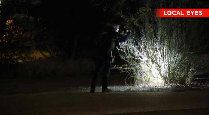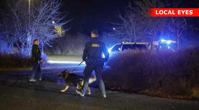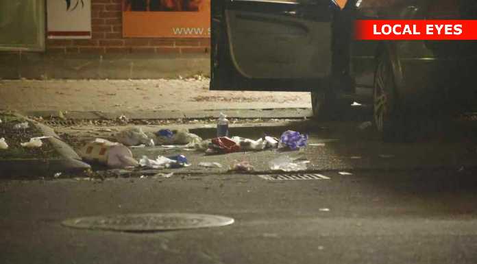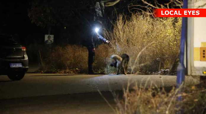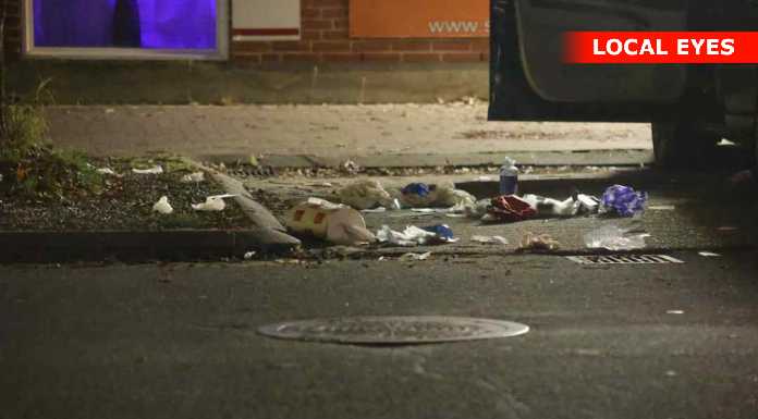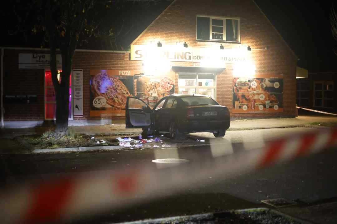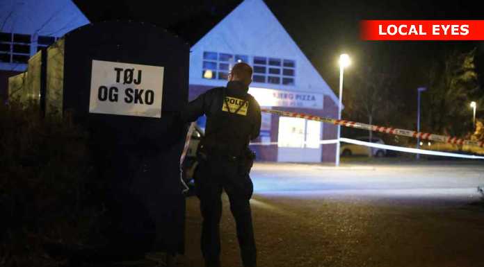 På stedet kunne man se en massiv politiindsats foran pizzeriaet, hvor et stort område var spærret af. Politiet arbejdede både med patruljer, hunde og ILS-politi, som afsøgte området grundigt.