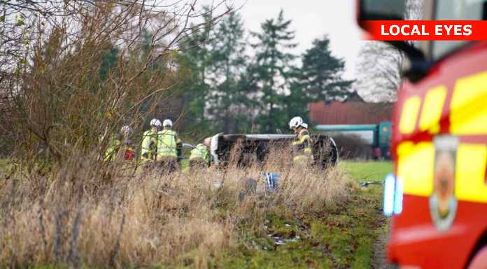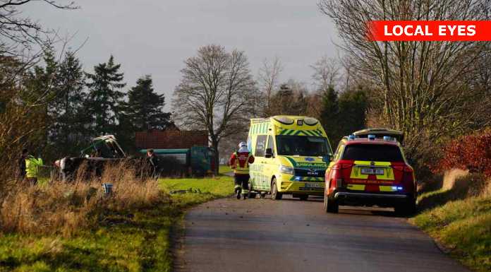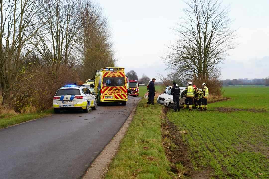 Slagelse : lørdag middag fik Slagelse brand og redning station Sorø en melding om fuh fastklemte på herrestrupvej. Da man kommer frem ligger en bil på siden inde på en mark. En person i bilen er teknisk fastklemt, det vil sige at personen ikke kan komme ud ved egen hjælp eller de ambulance folk på stedet og der er brug for mere mandskab. En person bliver kørt til check på sygehuset.